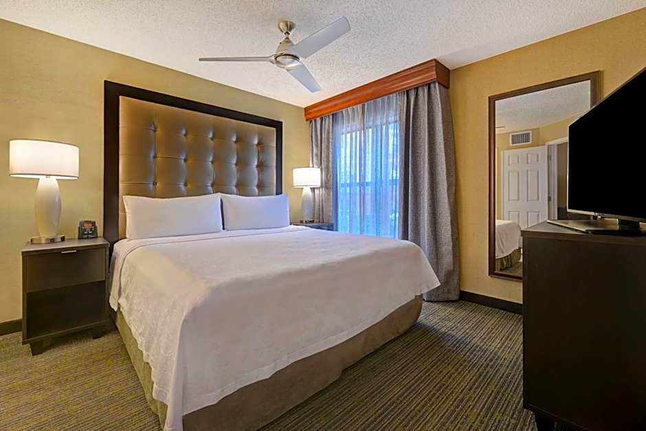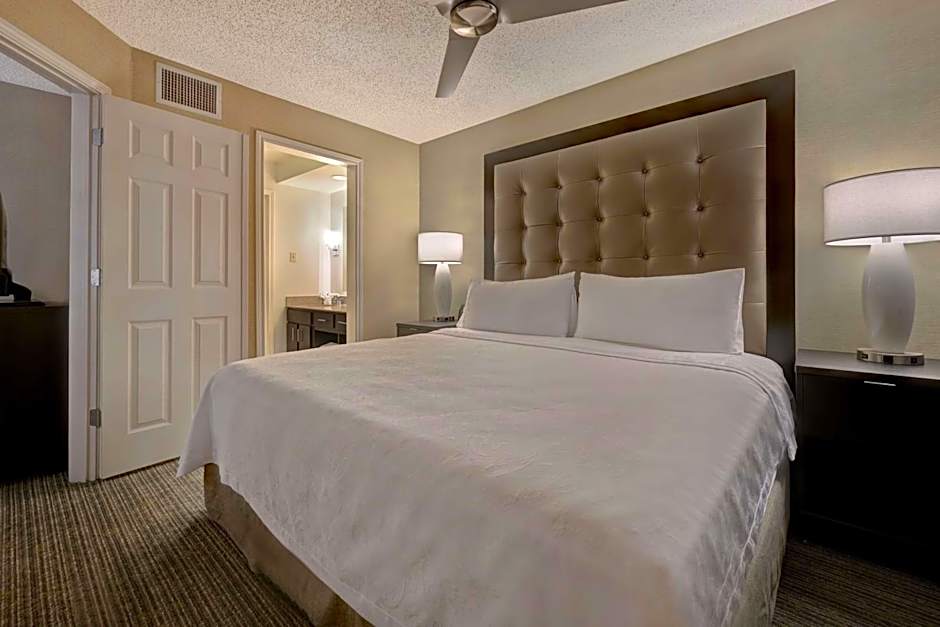 is 120sqft larger than the standard suite and features a fireplace, private bedroom with 1 King bed, fully equipped kitchenette, and living room with sofa sleeper.